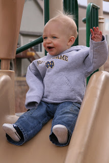 We went to a park to top all parks on Sunday night with Uncle L & Aunt K and had a rip roarin' time. Dude giggled loud enough for the whole park to hear him when he went down the slide and soared through the air on the swings. Dad and Uncle L might have had the best time out of all of us though. Boys will be boys...not matter how many years they have under their belts.