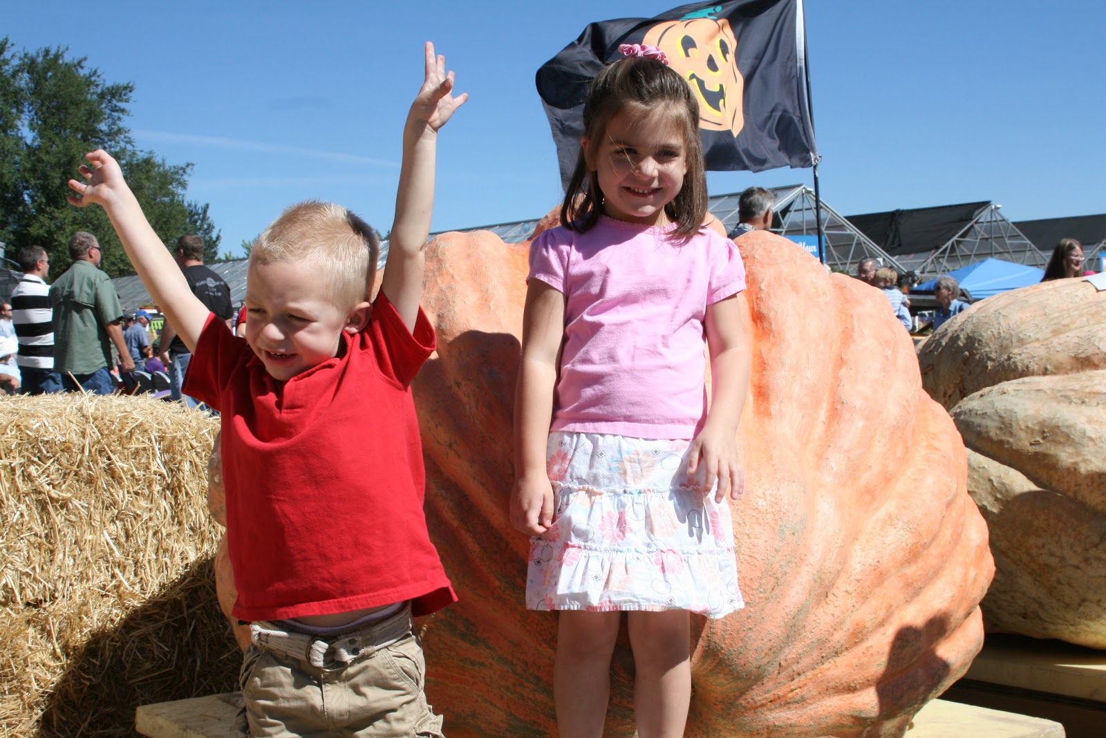 Ok, if it weren't for the fact that it was 94 degrees today and not a leaf is changing due to the balmy temps, it would feel like Fall. It's supposed to feel like Fall, so we hi-tailed it to our first pumpkin patch of the season. Of course we took Riles with us. A friend makes these excursions so much more enjoyable. We oohed and ahhhed over some ginormous pumpkins, got the little ones' faces painted, walked through hay mazes and dined on cardboard pizza in the back of the Pilot. And we sweated. A great Summfall day?