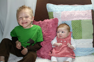 I'll leave you with 2 more scrumptious pictures of my beauties. Check out Squirt looking at her bro. She is quite enamoured with him, which is darling. He is so gentle and is so in love with his little Sissy. Melts a Mom's heart.