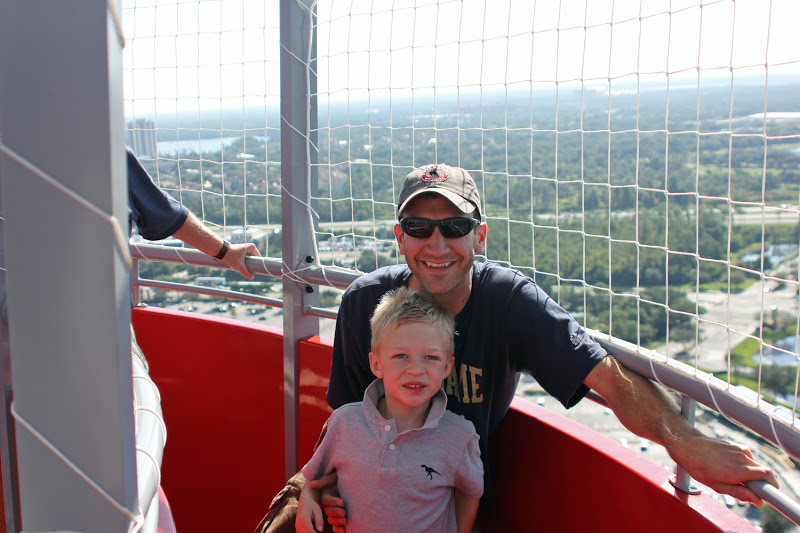 We arrived on a Saturday evening and were picked up by Grandpa Marc. He lives in Mobile and drove down in his Pilot, which he so generously shared with our troop. We stayed at a beautiful Marriott 3 bedroom condo just 5 miles outside the park entrance which Mom V arranged through her time share. We couldn't have asked for better accommodations. Tons of space, big kitchen, outdoor patio overlooking a pond with views of nightly fireworks...we're so grateful to Mom and Marc for sharing this place with us. It had multiple pools, which we frequented and thoroughly enjoyed. Our children just might coin the pool time as the highlight of their week, which sounds silly, but they laughed and frolicked and jumped and screamed and were catapulted and soaked in the sun all while not sweating their hynies off. Pool time was a very good thing. For all of us.